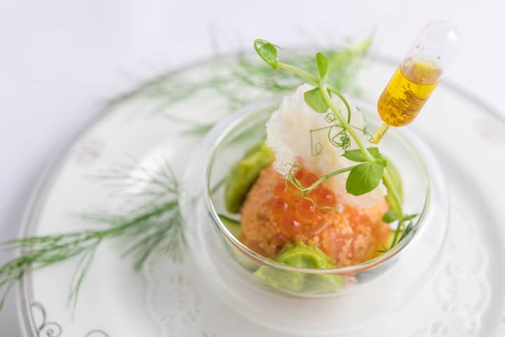 厳選された旬の食材を、和の技と洋の感性で美しく仕立てました。