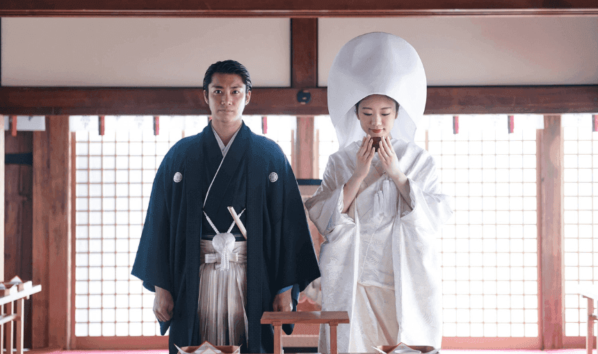 粛々と婚礼の儀は進行します。美しい琴の音色や巫女の舞がお二人を祝福します。